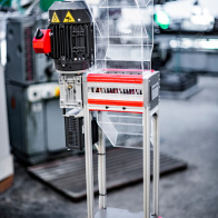 Vékonyfalú, hőre lágyuló polimer (műanyag) termékek aprítására szolgáló berendezés.